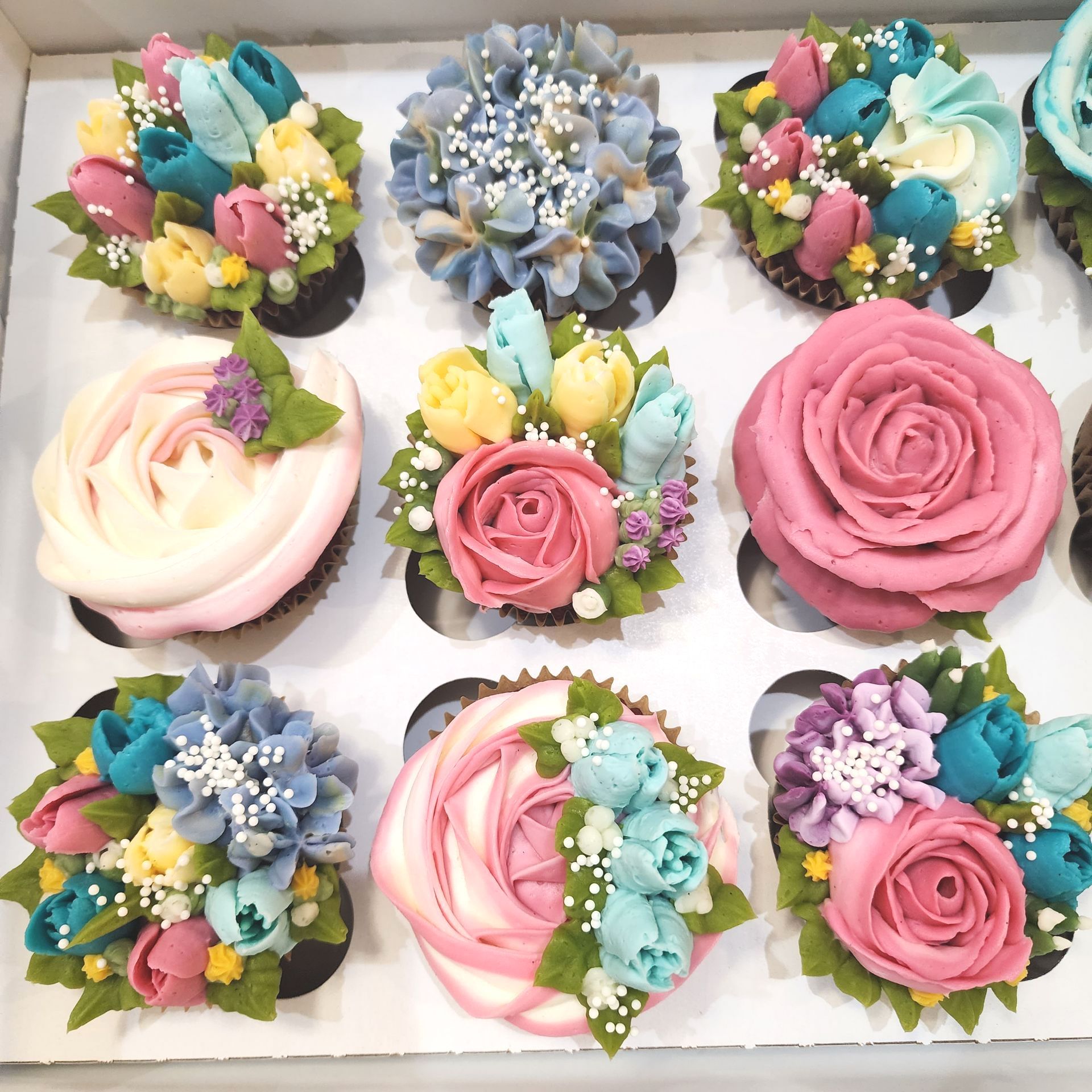 Delicately crafted buttercream florals with exquisite floral likeness and design details. Gourmet cupcakes that emulate real botanicals. Perfect for any shower or event for that extra "wow" factor. Can be individually boxed for party favors or as bouquet.