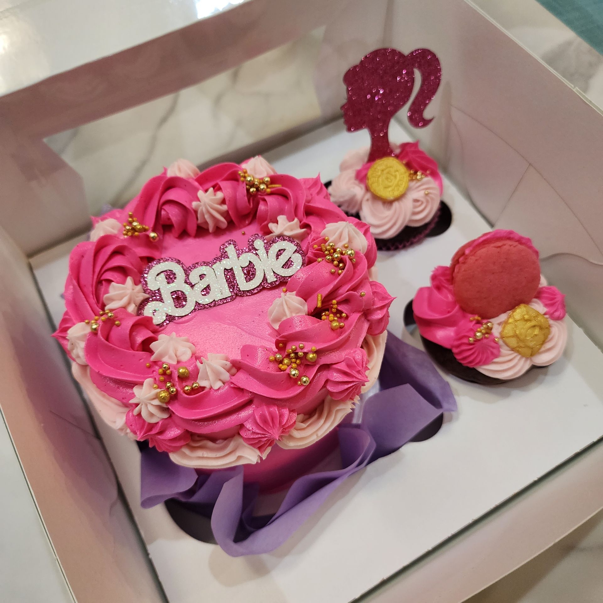 A Mini Cake plus 2 matching cupcakes. Perfect as a thank you or host gift, or for a small dinner party. Feeds up to 8.